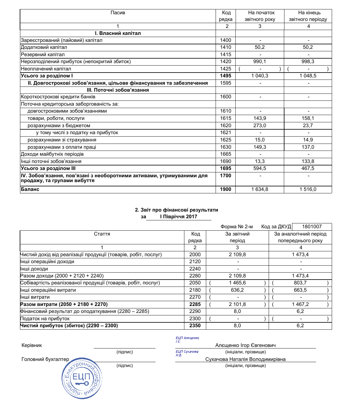 Financial reporting of SE "Bioimplant" Ministry of Health of Ukraine"