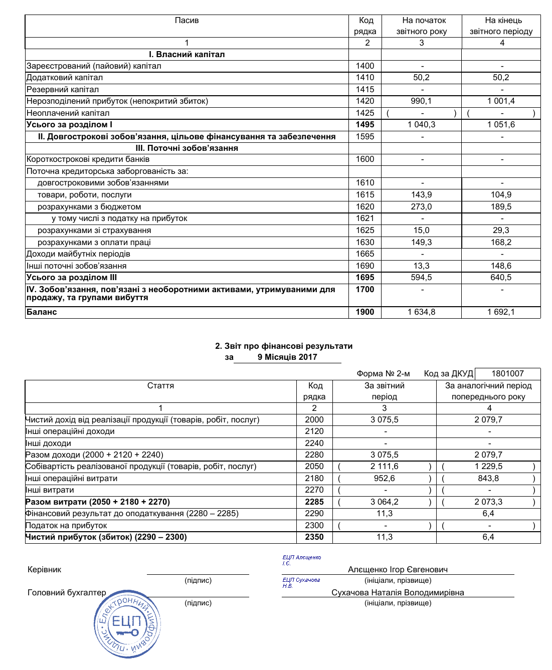 2017 9 months 1st, 2nd. Financial report of a small business entity