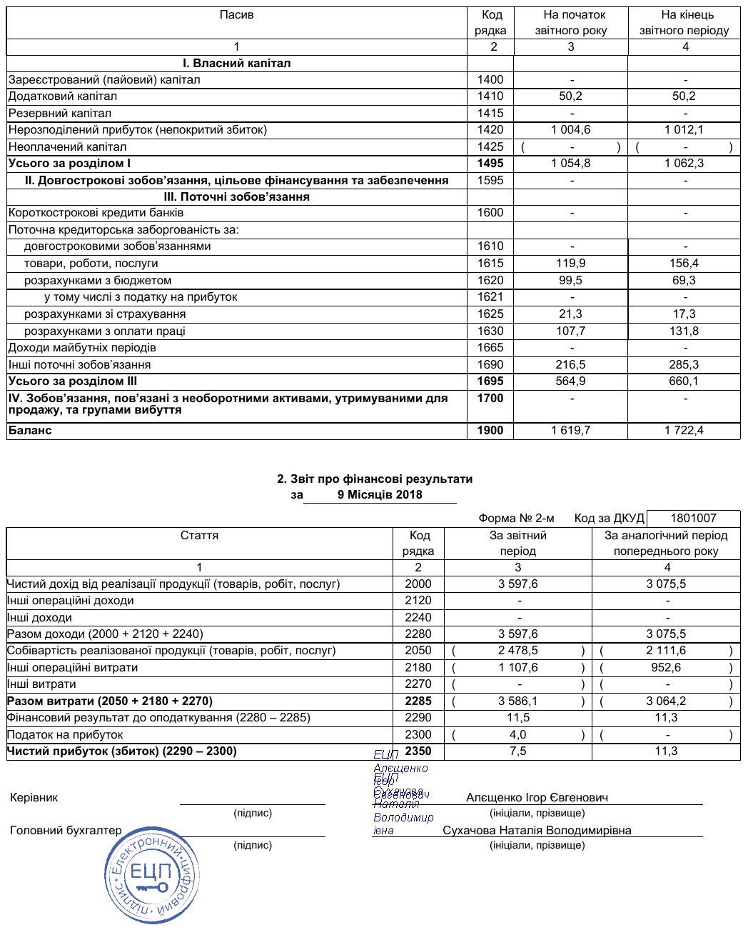 Financial reporting of SE "Bioimplant" Ministry of Health of Ukraine"