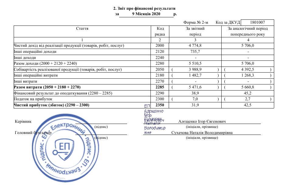 2020 9 months 1st, 2nd. Financial report of a small business entity
